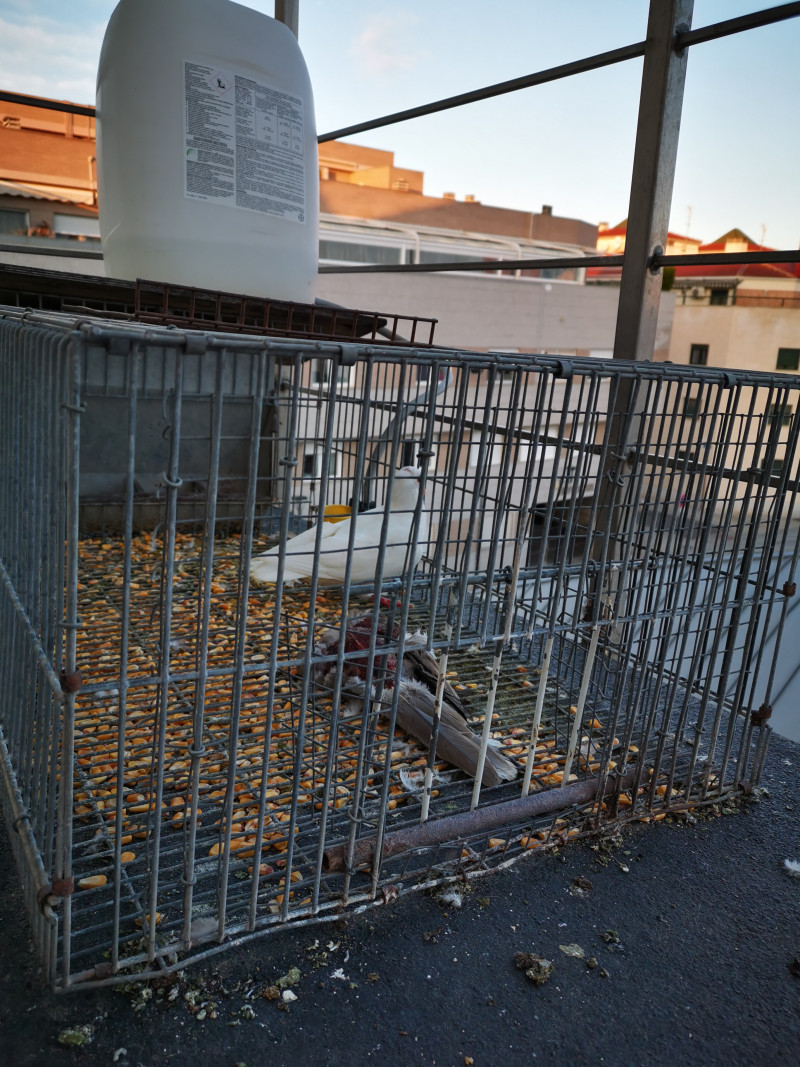 Durante esa semana, muchas han muerto en el interior de la jaula debido a enfermedades, peleas, por estar expuestas a las inclemencias metereológicas y a temperaturas extremas o en el caso de las tórtolas, que por su tamaño inferior a las palomas no pueden comer el maíz que se les suministra, de hambre.